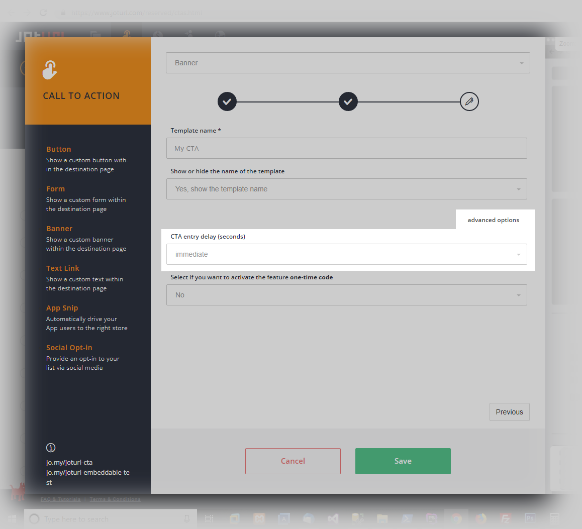 - create/modify your CTA, go to the last step of the creation/modification wizard and click on advanced options